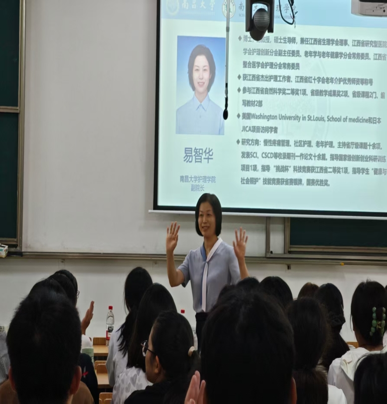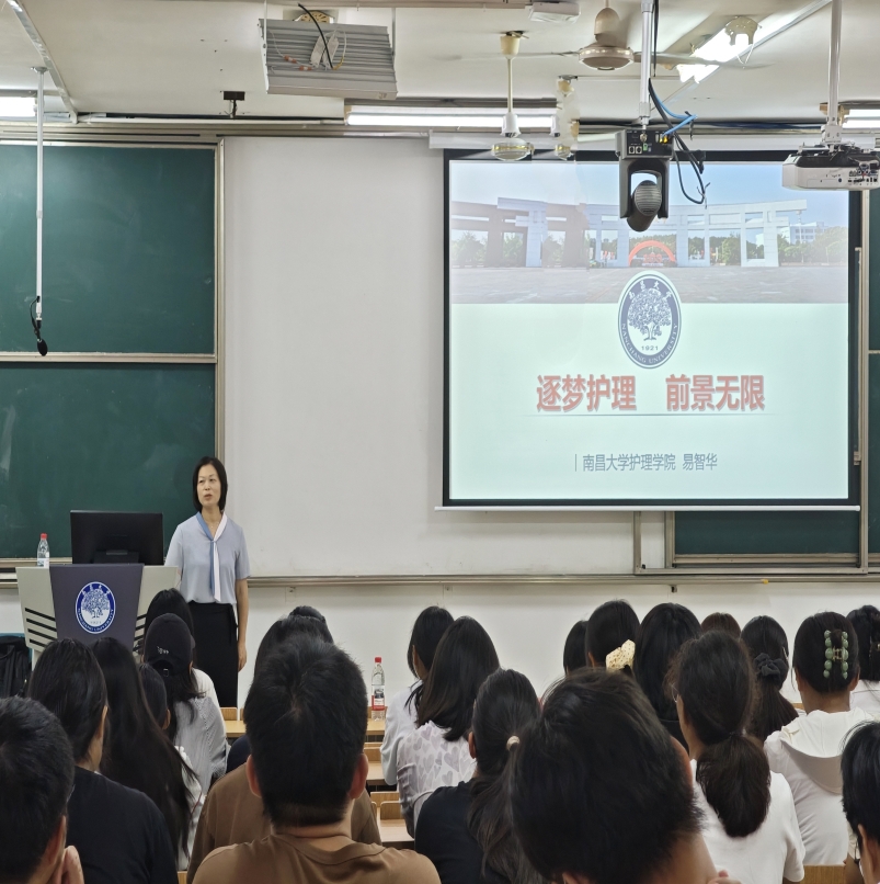 为帮助新生更好理解护理专业内涵,规划大学生涯,2025 年 9 月 14 日下午,学院在前湖南院第一教学大楼,为2025 级新生举办专业教育讲座,副院长易智华主讲,主题为“逐梦护理,前途无限”。