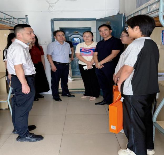 9月28日下午,副校长吴丹、学工处副处长洪黎明,与学院党委书记喻华宝、院长况海斌一同走进学生宿舍,看望本科新生代表,将满载心意的关怀送到宿舍、送到学子心坎上。领导们与同学们亲切交谈,细致询问大家的生活适应情况、课程学习进度;同时勉励新生们珍惜大学时光,尽早明确学业方向、做好生涯规划,“遇到任何困难,辅导员和学院都是你们的后盾”。一句句叮嘱、一声声鼓励,让新生们在中秋前夕感受到了家的温暖。