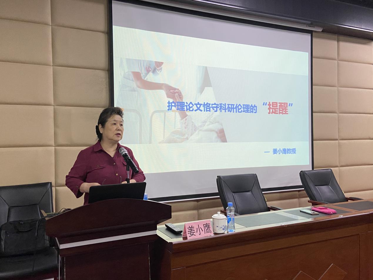 姜小鹰教授以《护理科研论文恪守伦理的“提醒”》为题,围绕科研论文发表应遵循的伦理、违背学术研究规范的案例、护理论文投稿中的案例提醒等方面,结合自身科研经历,援引大量工作中遇到的经典实例,与广大学子分享了自己的科研经验和心得体会:“时刻谨记学术诚信,从我做起;遵守学术规范,维护学术尊严。”