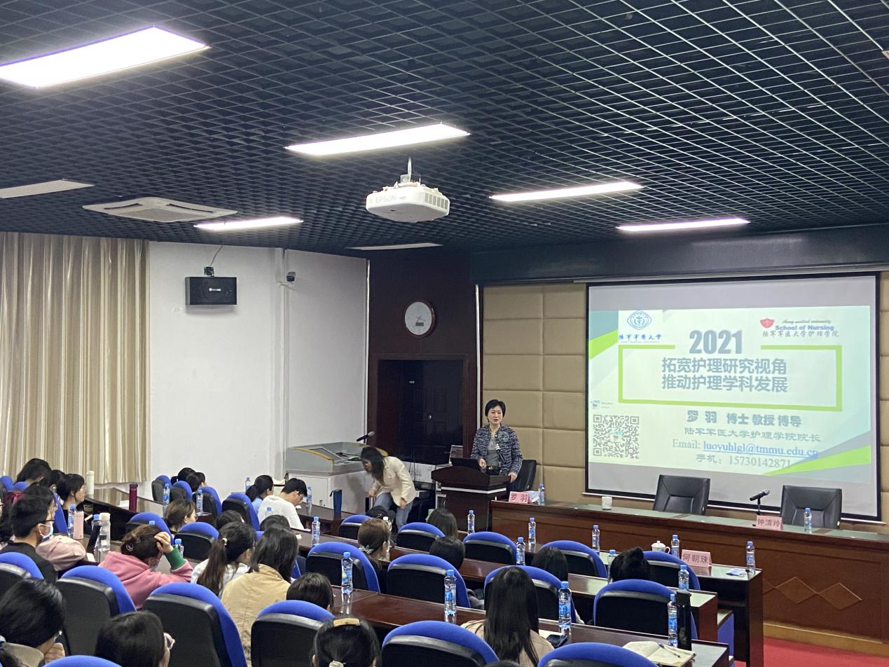 罗羽教授做了题为《拓宽护理研究视角,推动护理学科发展》的报告。她首先分享了自己的求学之路和护理成长轨迹,瞬间拉近了和同学们距离,让大家深刻感受到了终身学习的重要性;接着从护理理念不断转变、护士角色随着时代变化不断拓展、护理研究视角不断延伸等方面进行了拓展讲述,最后举例谈论人文护理研究视角的拓展,并分享了自己创立护理教育的理念、过程、目的、价值等内容。