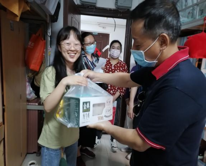 防疫爱心慰问加强了同学们对学院和学校的信任感,消除了同学们在初开学且面临严峻疫情挑战时的恐慌情绪,有助于校内防疫抗疫工作的开展,促进师生,校生的互动和理解,为抗疫工作注入了新鲜的力量。