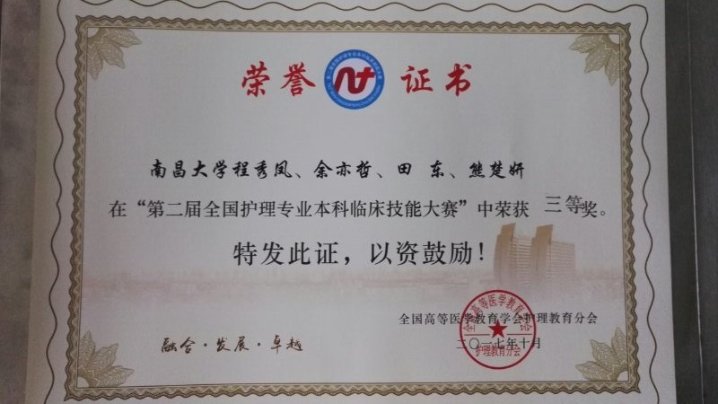 10月21日,由全国高等医学教育学会护理教育分会主办、广西医科大学承办的第二届全国护理专业本科临床护理技能大赛落下帷幕。经过激烈角逐,我院学生代表队程秀凤、余亦哲、熊楚妍、田东四位同学获得三等奖。