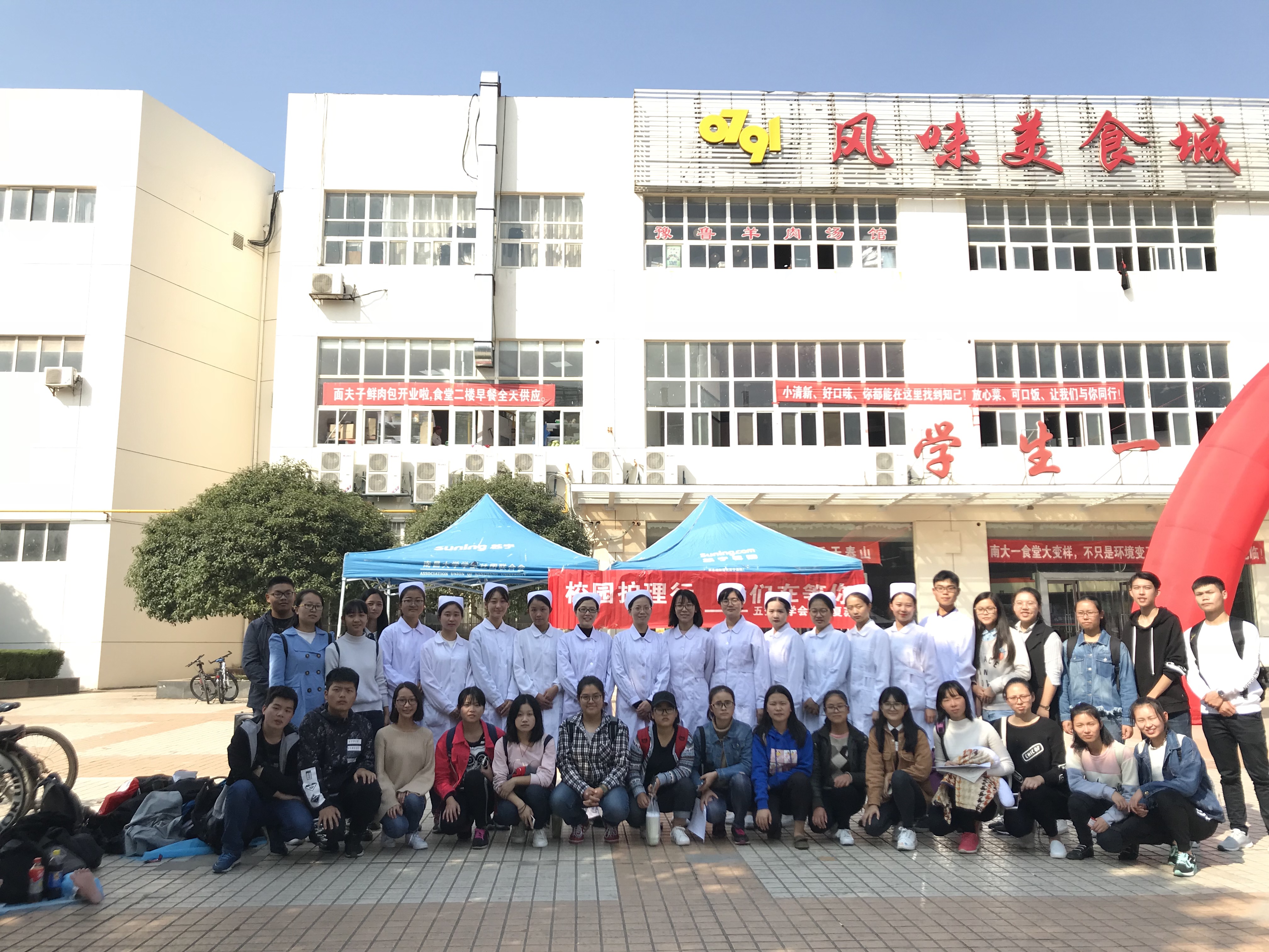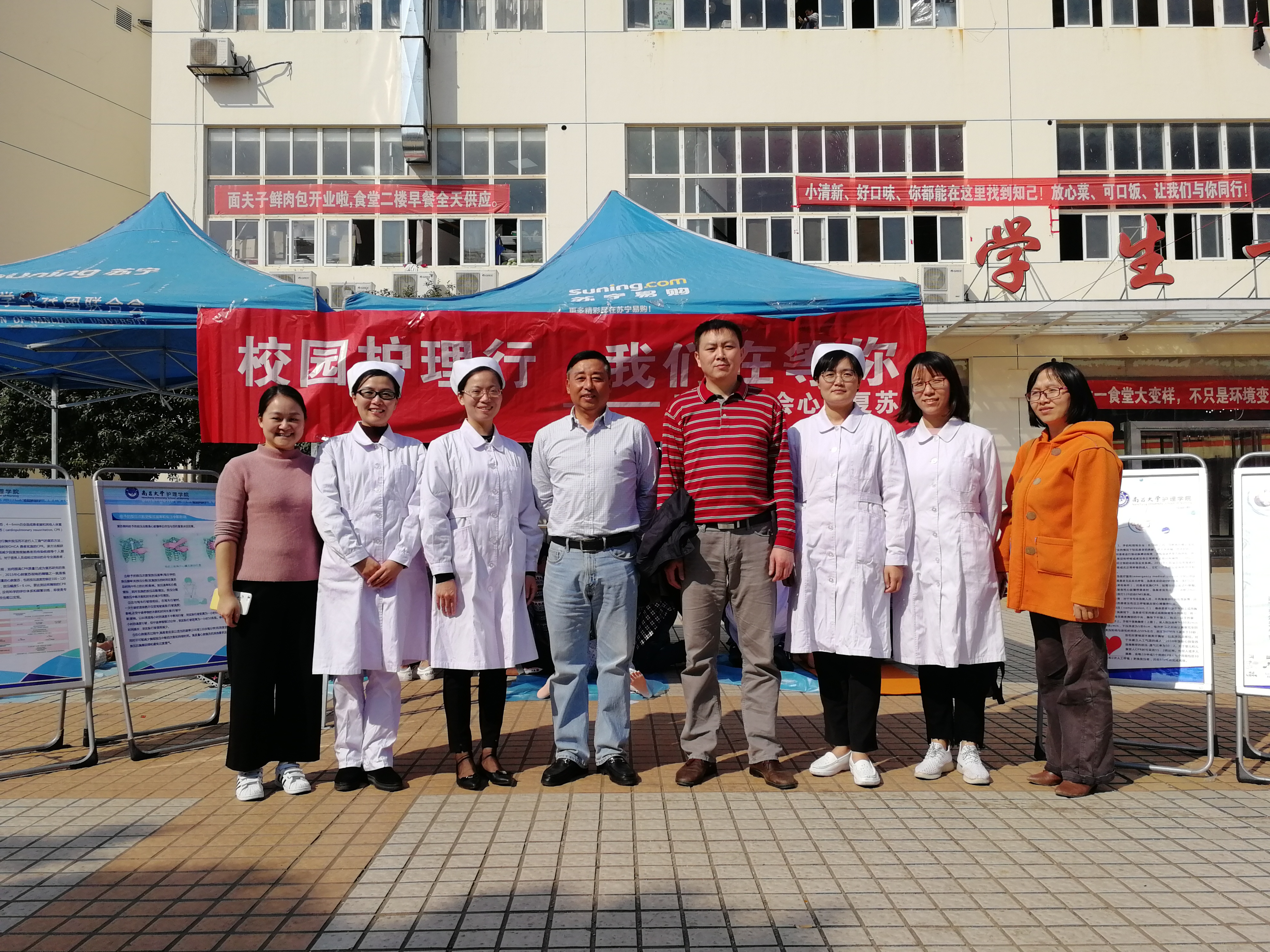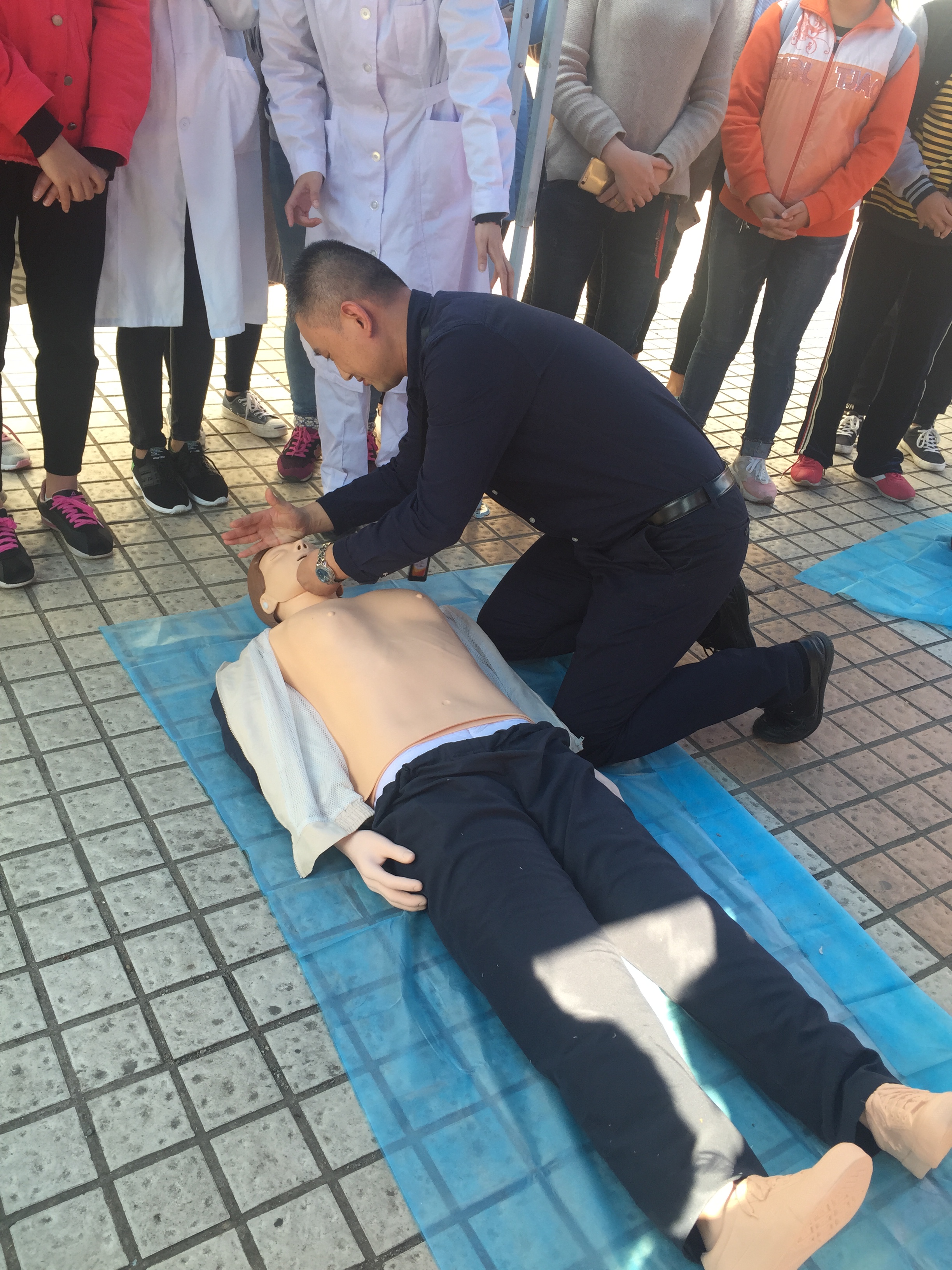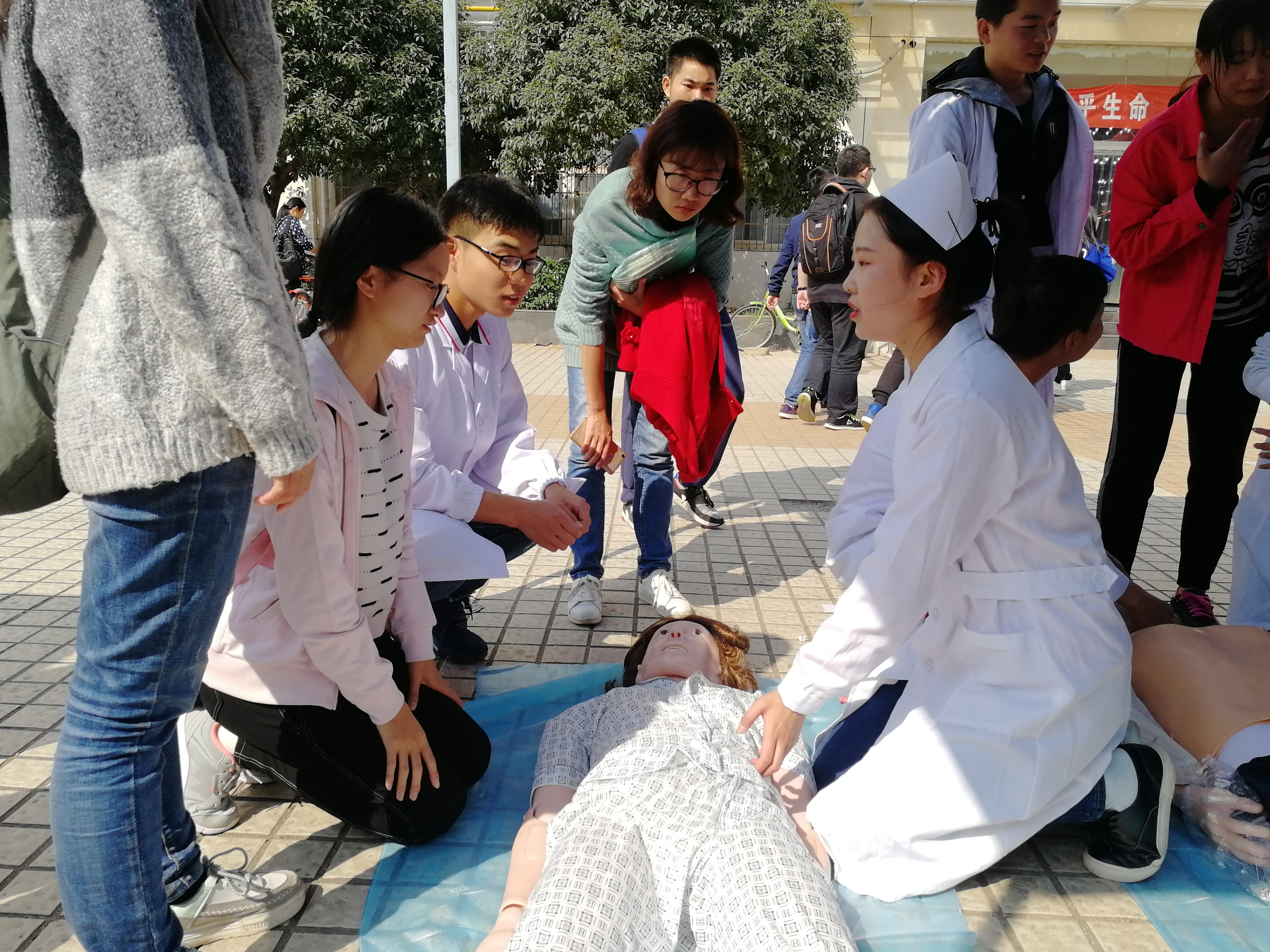 2017年11月9日,南昌大学保卫处在前湖校区一食堂门口举办“119消防宣传日”活动。此次活动共分为三个模块:安全知识手册宣传,消防演练,急救小课堂。护理学院承办“急救小课堂”模块,推出独具护理特色的校园护理行急救培训活动——“五分钟学会心肺复苏”。
