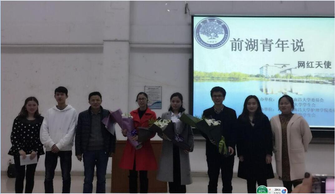 (护理学院 报道)2017年3月18日下午14:00,由共青团南昌大学委员会、南昌大学学生会主办,护理学院承办的“前湖青年说”——网红天使暨护理学院第15期天使讲坛在机电楼127顺利举行。本次讲座邀请到了南昌大学在读研究生刘璐;南昌大学第二附属医院、2016年江西网红人物王婷;曾获“江西省十佳护士”等多项荣誉的中华护理学会灾害委员会青年学组副组长方亮到场演讲。护理学院党总支副书记彭金生参加了此次讲座。