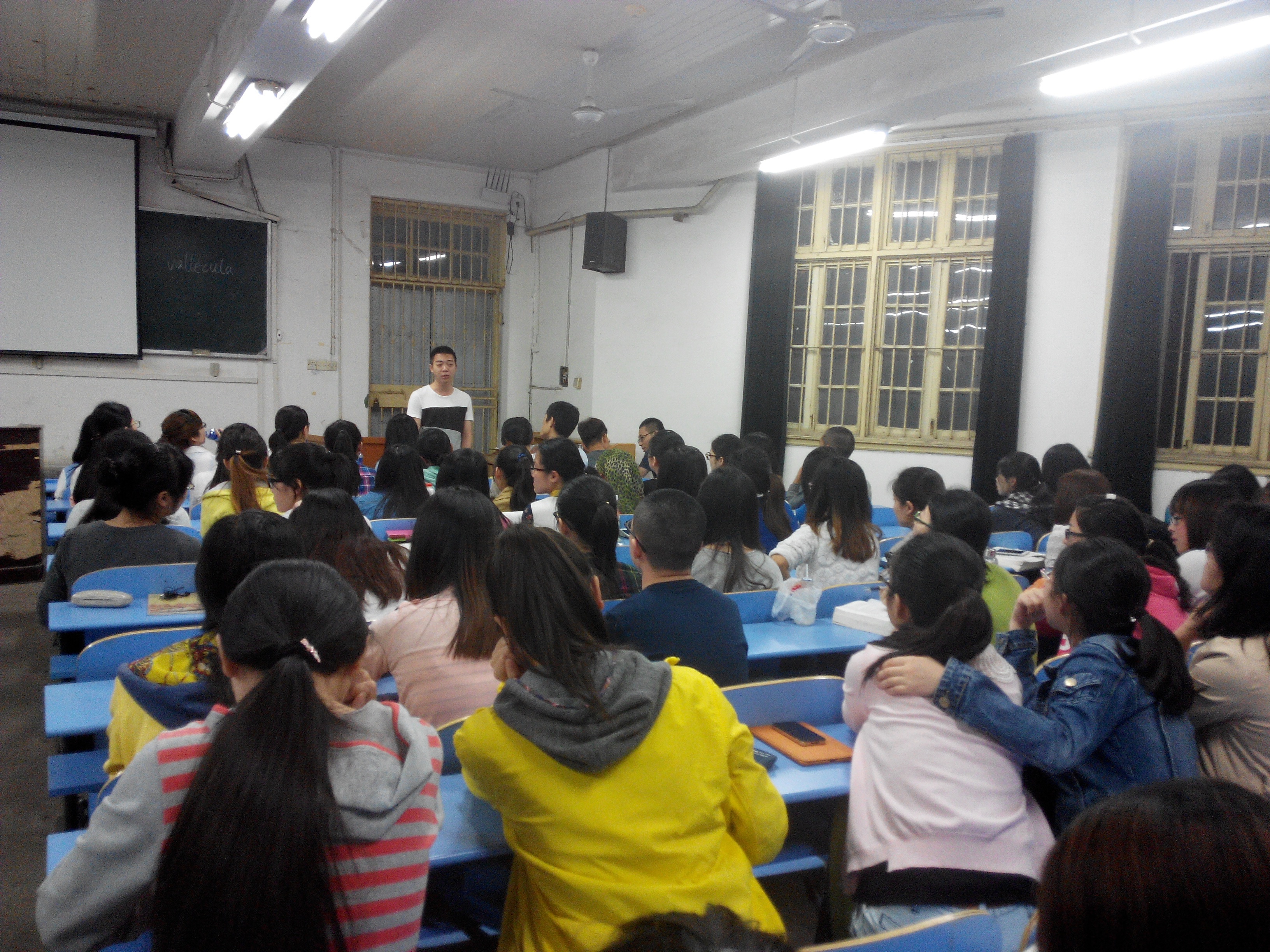 (护理学院 记者 邢晓慧)2015年5月5日晚七点,护理学院2011级优秀毕业生为2012级学生举行了一场以“传经授道,携手并进”为主题的求职、考研经验交流会,交流会在东湖校区2001教室举行,2012级学生积极参与。