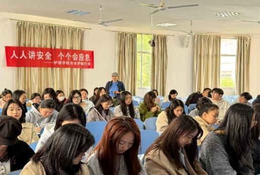 为了增强全院师生的消防安全意识,提高应对突发火灾事件的自救和互救能力,我院于2025年11月11日,在东湖校区教学大楼组织开展了以“人人讲安全,个个会应急—护理学院安全护航行动”为主题的消防安全培训及应急疏散演练。本次培训由杨海兰老师主讲,全院师生参加。