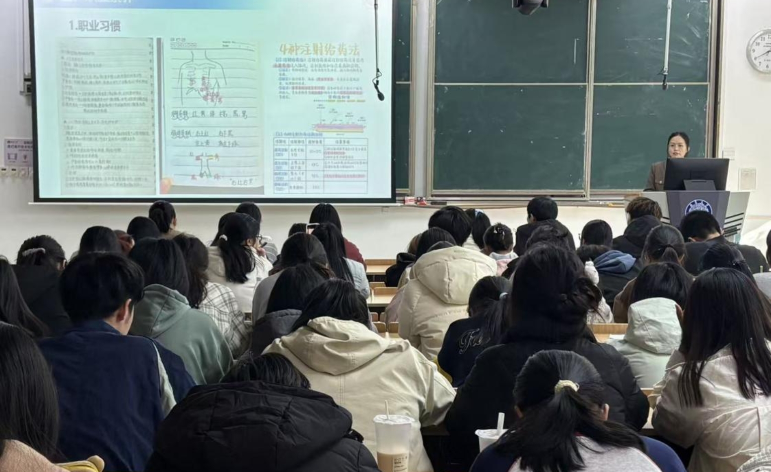 互动环节中,同学们围绕如何高效记好笔记、临床中如何与医生更好配合等问题踊跃提问,王婷结合实操经验拆解笔记优化技巧、分享医患协作关键要点,耐心答疑解惑并给出针对性建议,现场氛围热烈融洽。思想碰撞间为学子搭建起理论衔接临床的桥梁,有效缓解了学业与职业迷茫。