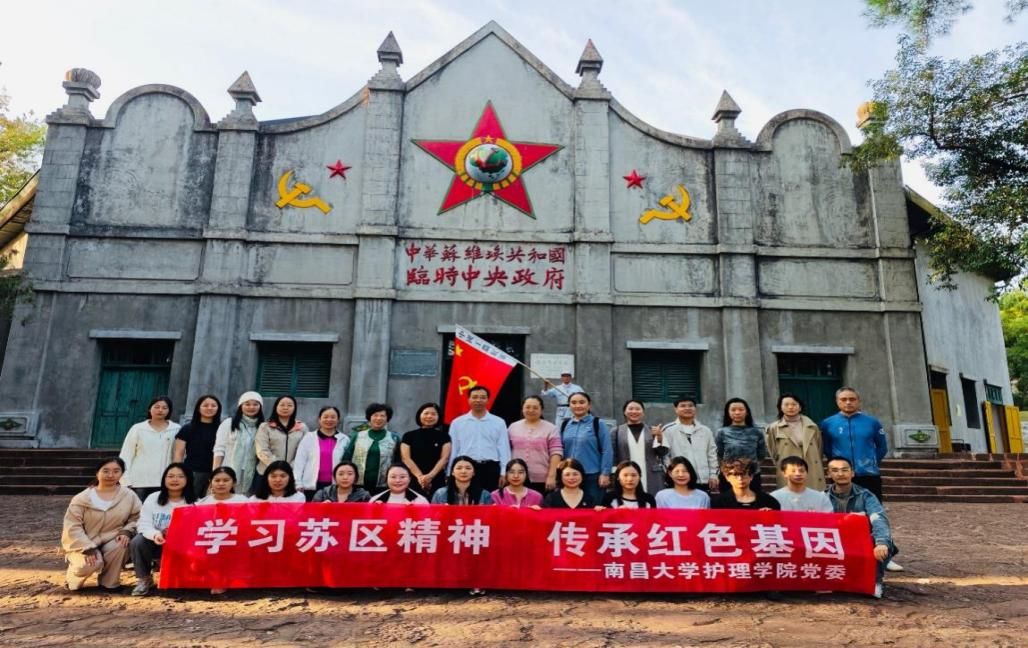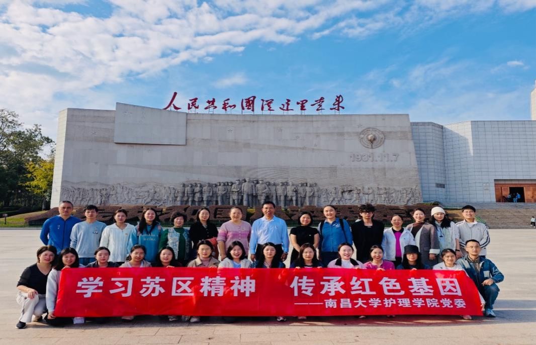 时值金秋,桂子飘香。为深入学习贯彻习近平新时代中国特色社会主义思想,扎实推进学习教育常态化长效化,传承红色基因,赓续精神血脉,深化学院“南丁红护·医心向党”品牌建设,2025年11月1日至2日,学院党委书记喻华宝、副书记熊宁佳带领学院师生党员代表一行,奔赴“红色故都”江西瑞金,开展为期两天的红色基地研学实践活动,在历史的回响与现实的感悟中凝聚奋进力量。