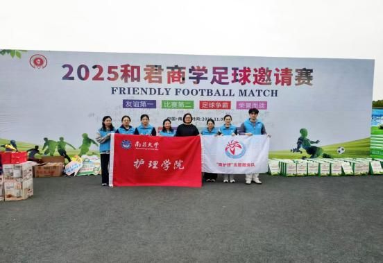 2025年11月1日,南昌大学前湖校区天健运动场内激情洋溢,2025和君商学足球邀请赛在此火热开赛。为保障赛事安全、有序进行,我院“南护研”志愿服务队全天驻守赛场,以专业护理技能和暖心服务,为参赛选手筑起一道健康防护线。