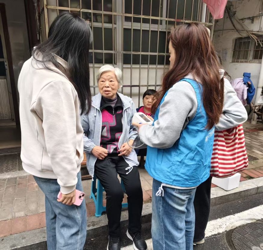 活动现场,志愿者们分工合作,有的在户外为居民测量血压,对于行动不便的老人,志愿者还前往老人家中提供测量服务。他们详细记录血压数据,并根据测量结果给予个性化的健康建议。在与老人的交流中,志愿者们不仅关注他们的身体健康,还关心他们的生活状况和心理需求。这种长期陪伴的模式,使志愿服务呈现出持续、深入的特点。