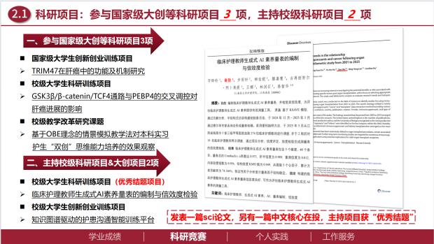 谢勋同学在校期间始终秉持“专业匠心”精神,在学业上刻苦钻研,连续多年保持专业成绩名列前茅。他不仅注重理论知识的积累,更在护理实践技能方面追求卓越,彰显出扎实的专业功底和良好的职业素养。在学好专业知识的同时,他还积极参与科研创新活动,显露出较强的科研潜力和创新意识。
