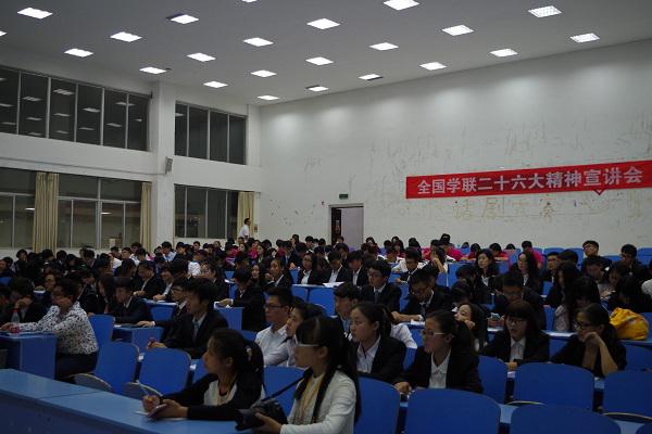 (护理学院 记者 张瑞朦)10月18日19:00南昌大学全国学联二十六大精神宣讲活动在机电楼D127召开,校学生会主席及各个院的学生会主席团着正装参加了这次会议。