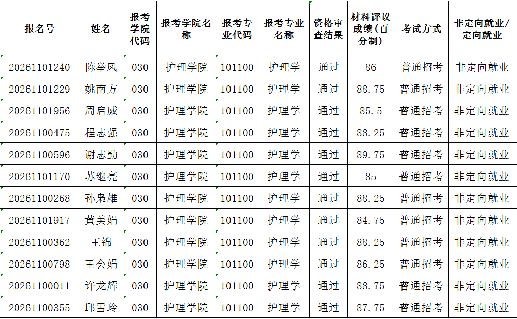 如对公示情况有异议,请在2026年1月4日下午16:30前反映至护理学院学科与科研(研究生管理)办公室。