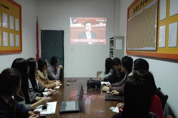 (记者 吴琼玉)2016年3月6日晚上八点,在南昌大学学生公寓二楼会议室,护理学院党总支副书记彭金生老师组织团学联主要干部观看了十二届全国人民代表大会第四次会议开幕式。