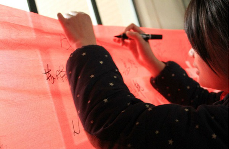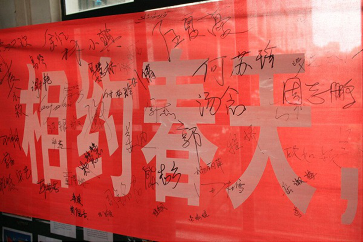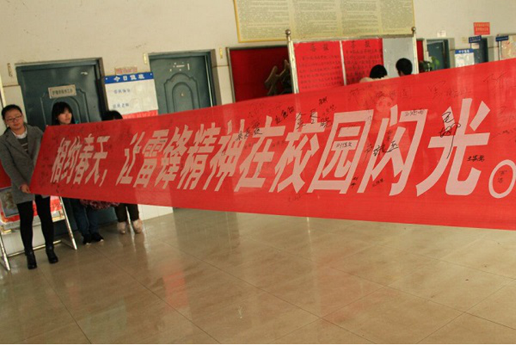 12点30分,全院学生在一楼大厅集合,院学生会主席周杰带领全体学生宣誓:“作为新时代的大学生,我们愿意继承雷锋精神,努力学习,为构建社会主义和谐社会而贡献自己的力量。”随后,大家郑重地在横幅上签上自己的名字,宣誓在以后的生活和学习中艰苦奋斗,吃苦耐劳,积极帮助他人,努力提高自身道德修养。接着李晓明老师进行讲话,他指出:“签名活动不仅仅是一种形式,更重要的是为了弘扬雷锋精神,雷锋用短暂而又辉煌的一生在平凡的工作岗位上无私奉献了自己的青春热血,成为千秋后代的学习榜样,雷锋精神是中华民族传统美德的集中体现,深深地影响了中国几代人的人生观,世界观,价值观,大家要在校园生活中弘扬雷锋精神,必须要做文明进步的大学生”。