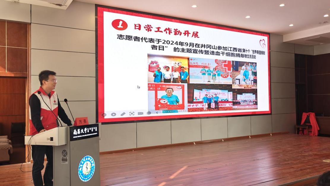 会议在庄严的《中国青年志愿者之歌》中拉开序幕。随后,南昌大学护理学院副院长易智华发表了热情洋溢的致辞。她首先对“三献”志愿服务团队在过去一年中取得的显著成绩表示祝贺,对每一位无私奉献的志愿者表示最诚挚的感谢。同时,易院长也表达了对未来工作的美好期望,鼓励志愿者们继续在推动无偿献血、捐献造血干细胞和宣传遗体器官捐献的工作中做出更多贡献。