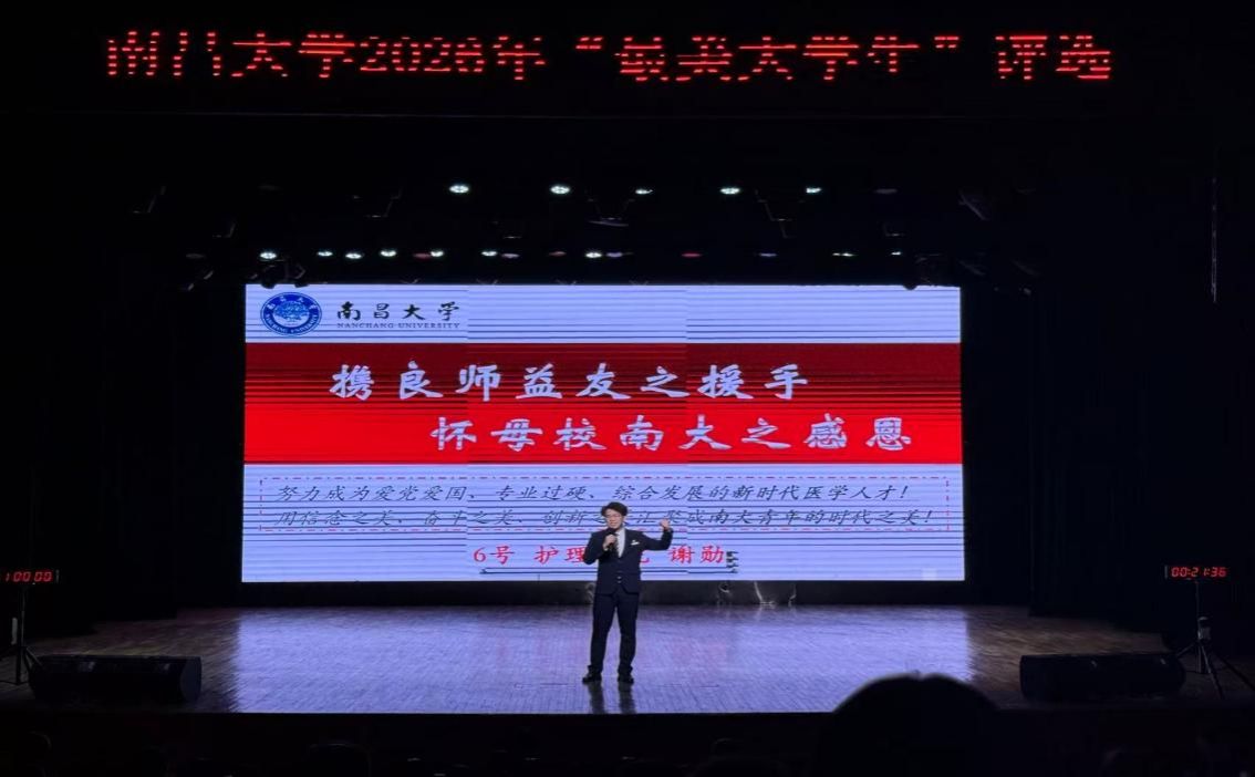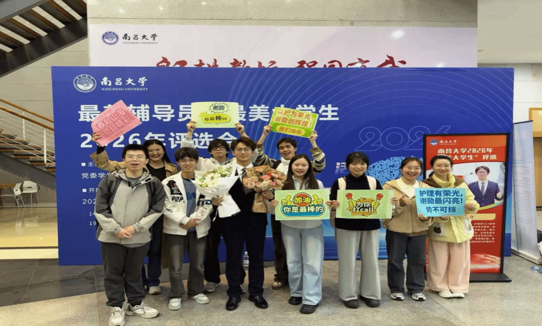 近日,南昌大学党委学生工作部公布2026年“最美大学生”评选活动最终结果,经自主申报、学院推荐、社区展演、网络投票、专家初评及现场答辩等层层遴选,我院谢勋同学凭借过硬的专业成绩、突出的科研实力、暖心的志愿服务成功获评南昌大学2026年“最美大学生”提名奖。