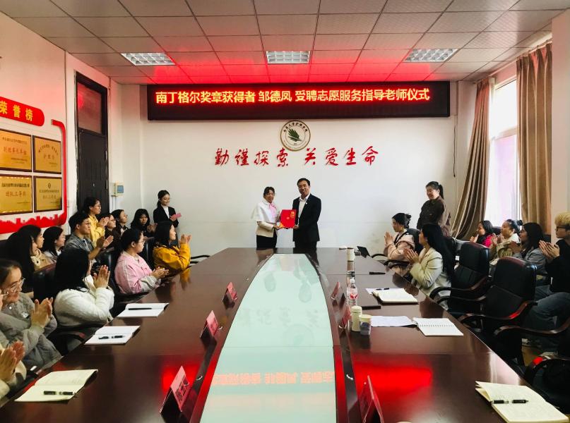 邹德凤老师是护理工作者与志愿服务者的杰出楷模,其事迹生动诠释了爱心、责任与奉献的深刻内涵。为持续深化学院志愿服务工作,喻华宝书记代表学院正式聘请邹德凤老师为“南昌大学护理学院志愿服务指导老师”,并为邹老师颁发了聘书。